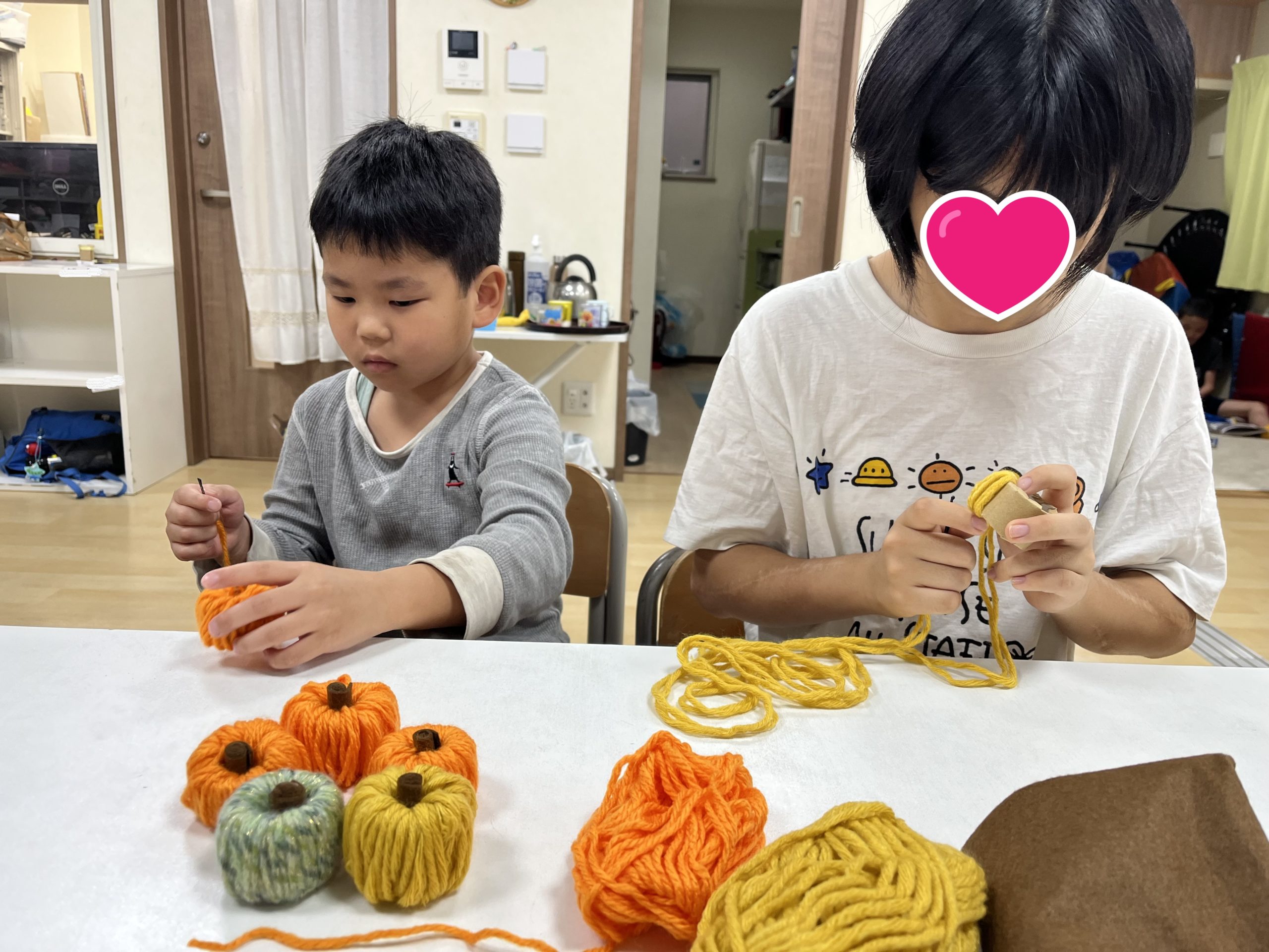 お部屋の飾りつけ用に、毛糸のかぼちゃ作りをしました🎃
