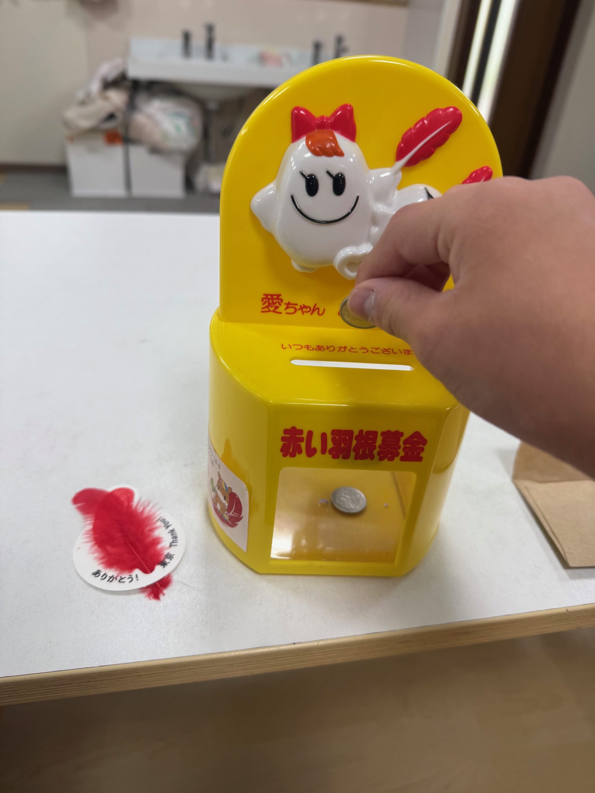 毎年、任意で赤い羽根共同募金の声かけをさせていただいています。