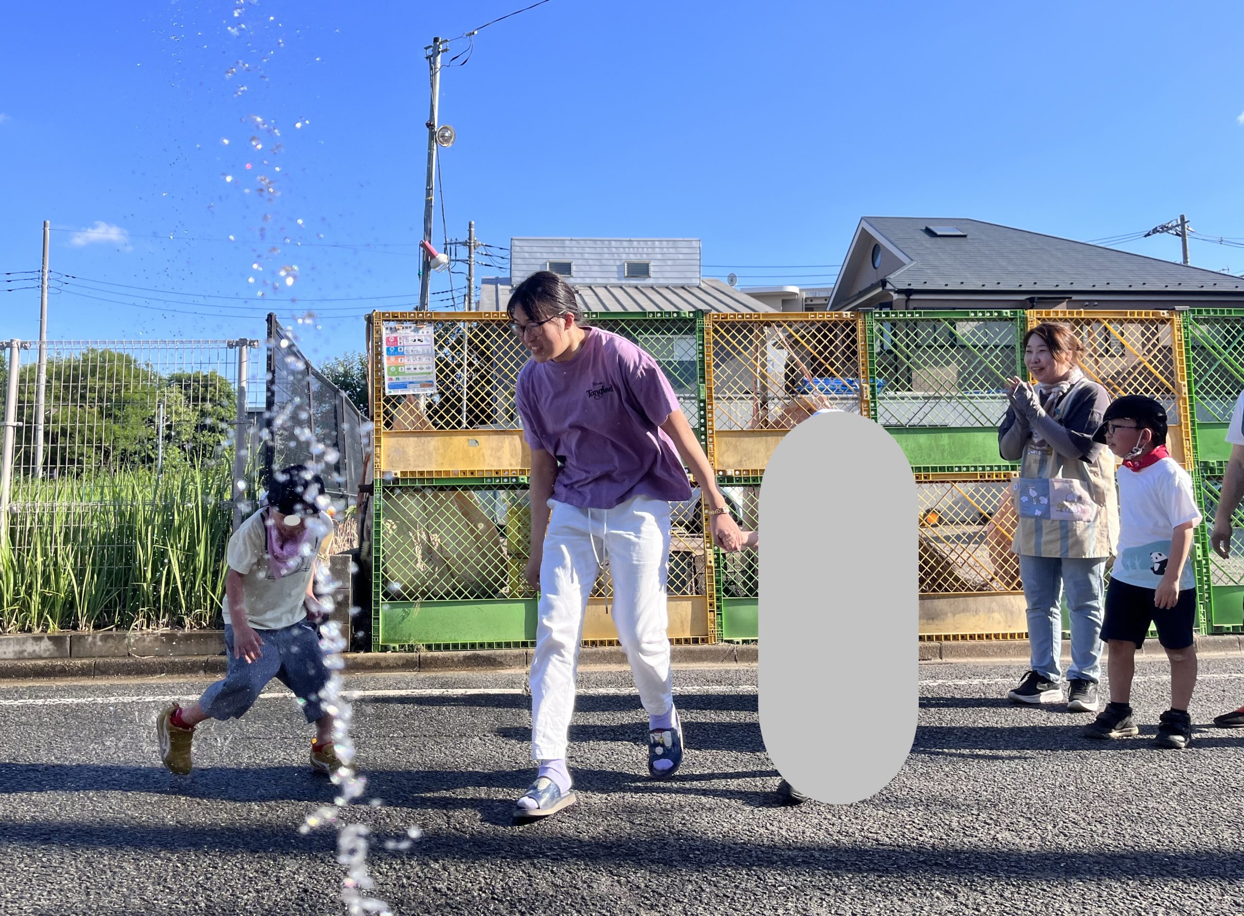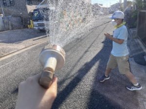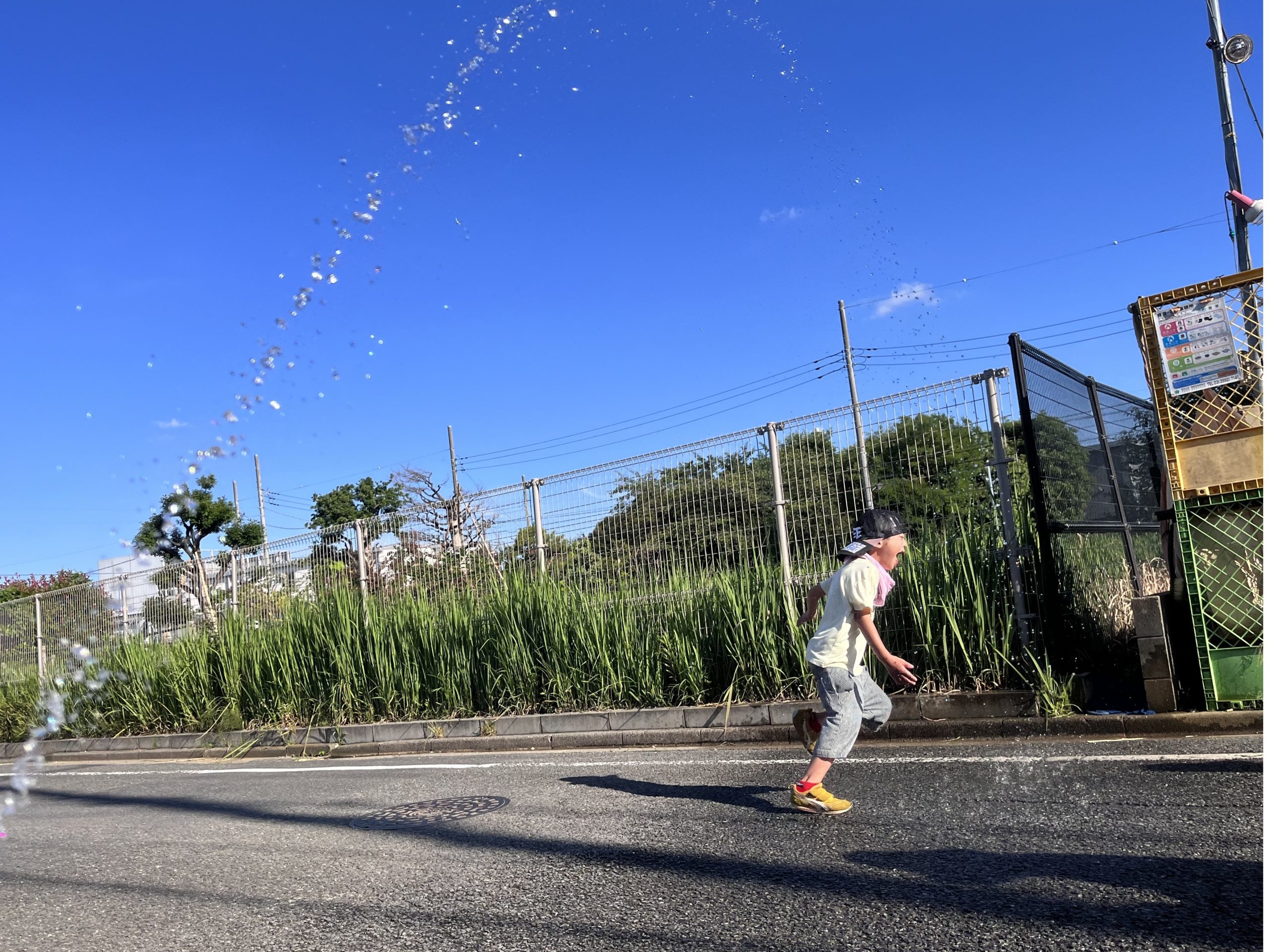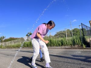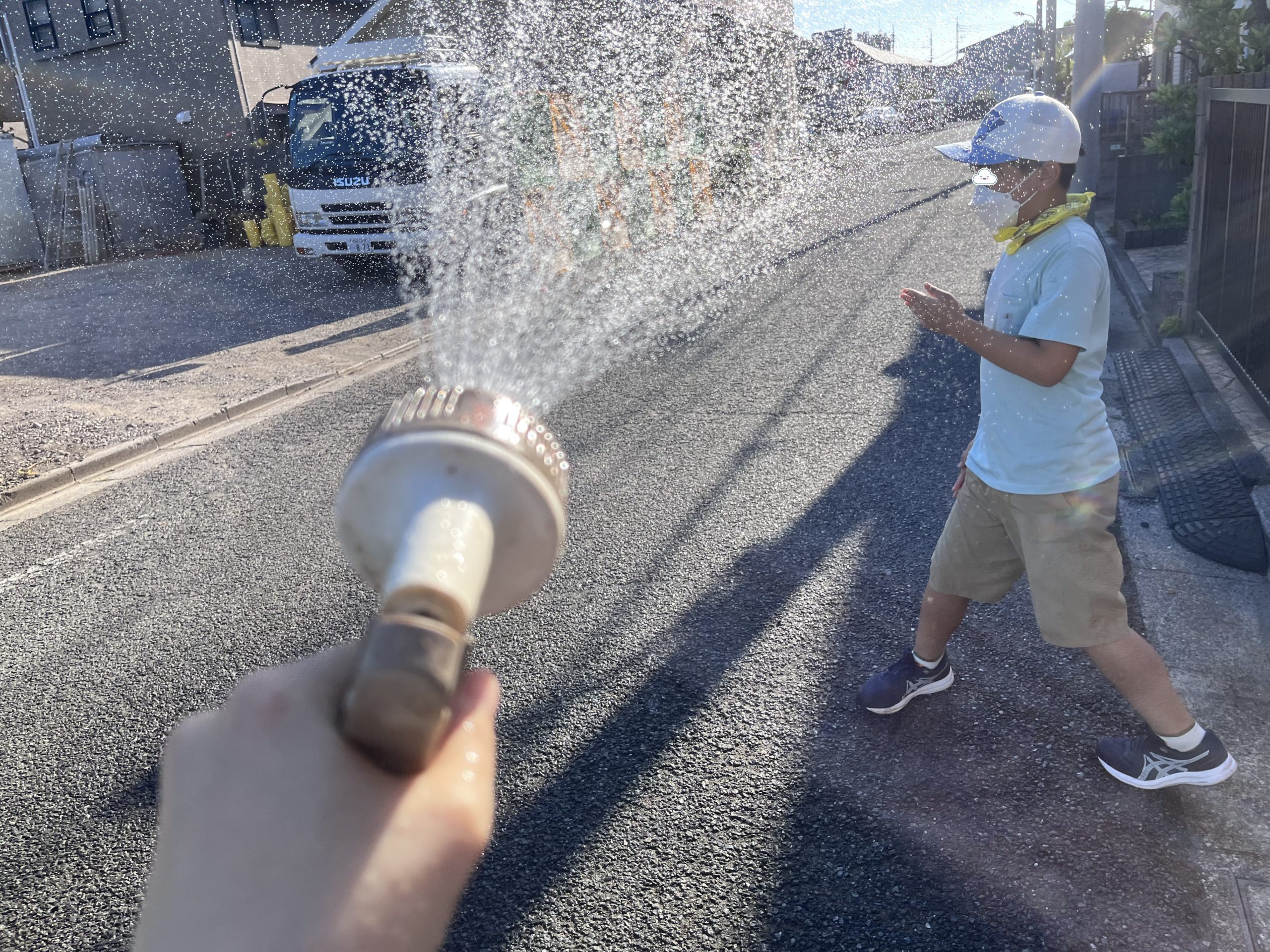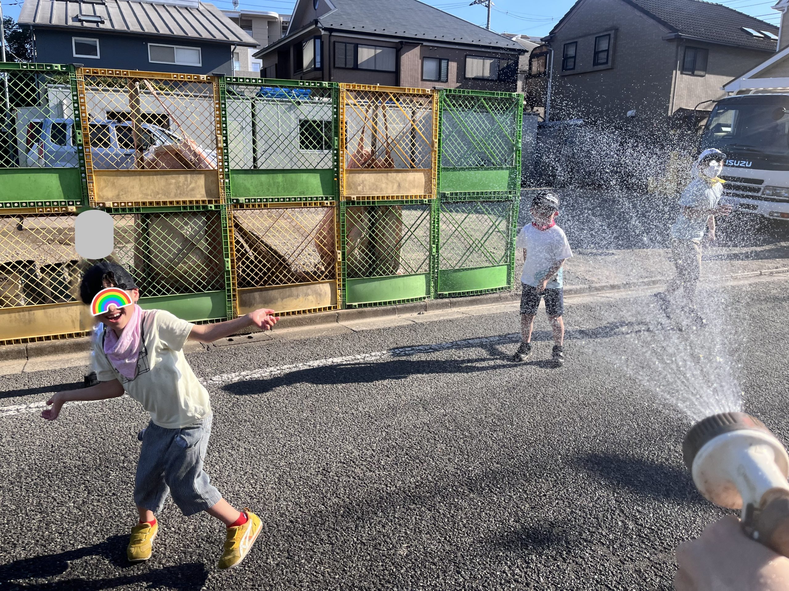 暑い日には、ホースを使ってちょっとした水遊びは取り入れることがあります。