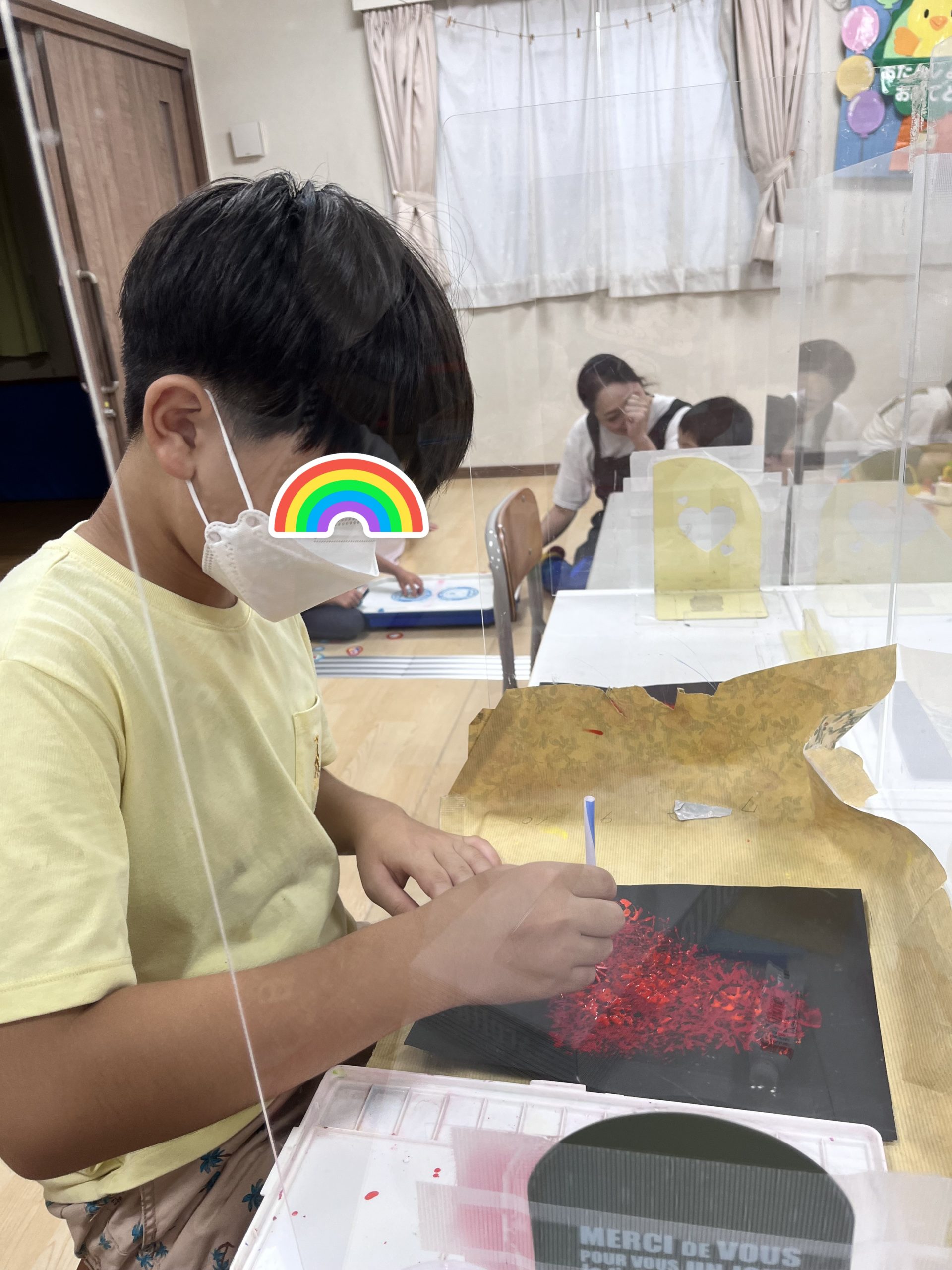 少し気が早い❓クリスマスを意識した作品作りですが、スタッフの「作品作ります!」という声かけに、一生懸命取り組んでくれています✨