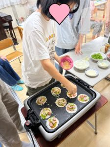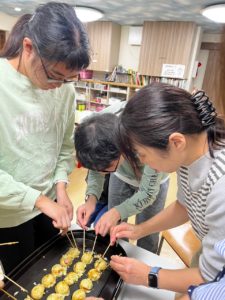 他の日には、おやつに、たこ焼きパーティや、餃子ピザ作りをしました🤗