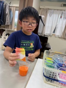 今年は半紙を絵具で染めて、うちわを作ります😌