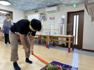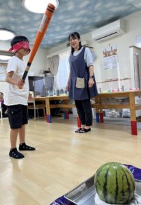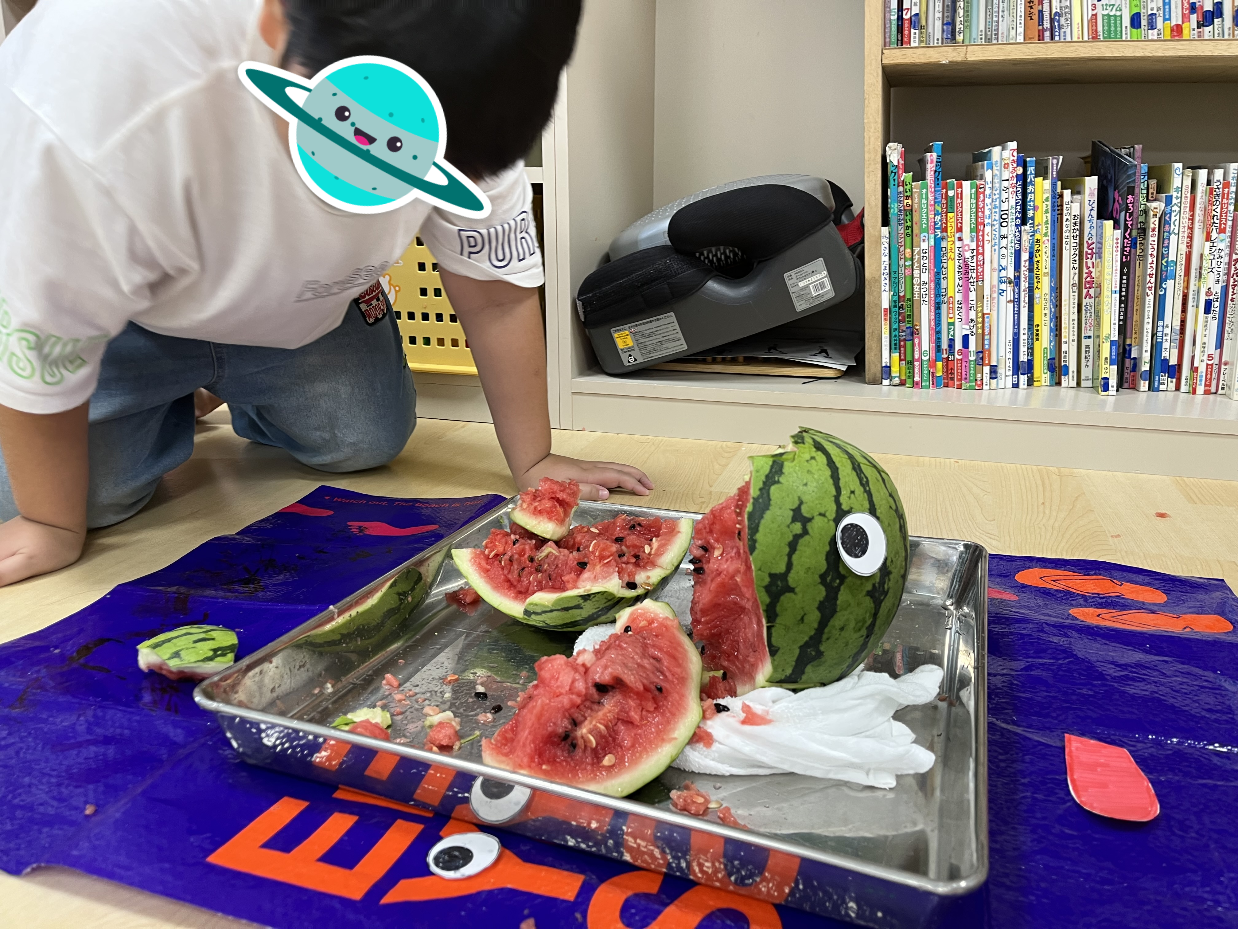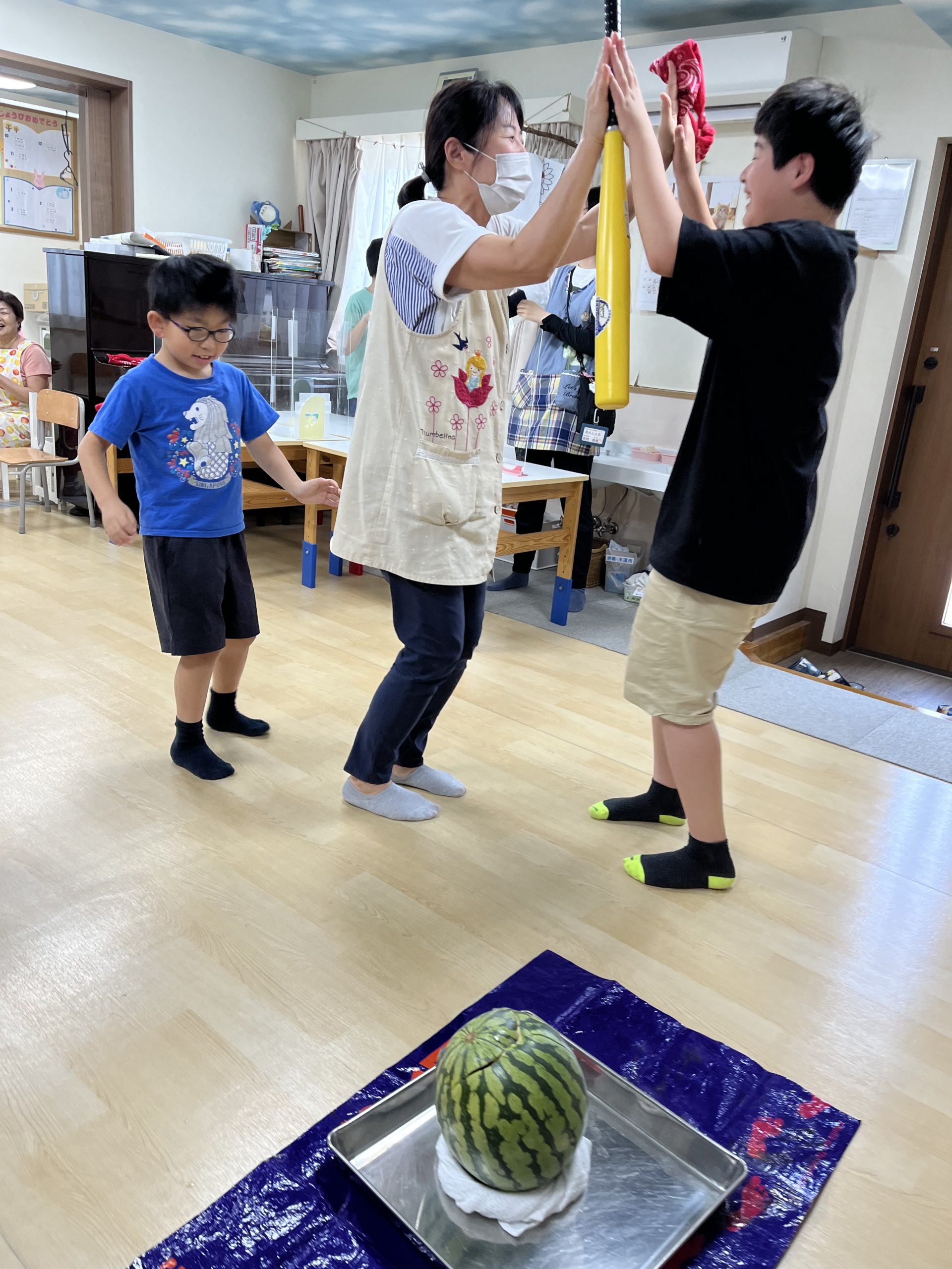 今年のすいかわりは、すいかにお顔がついていて子どもたちの反応も良いです♡