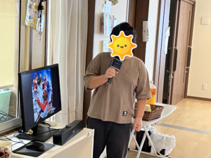 カラオケでは、フロアの電気を少し暗くして雰囲気を出し、好きな曲を1人3曲歌います♪