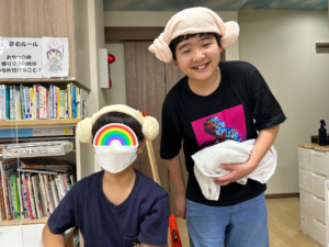 その時間に使うタオルを羊のように頭に巻く子どもたちがとっても可愛かったです♡