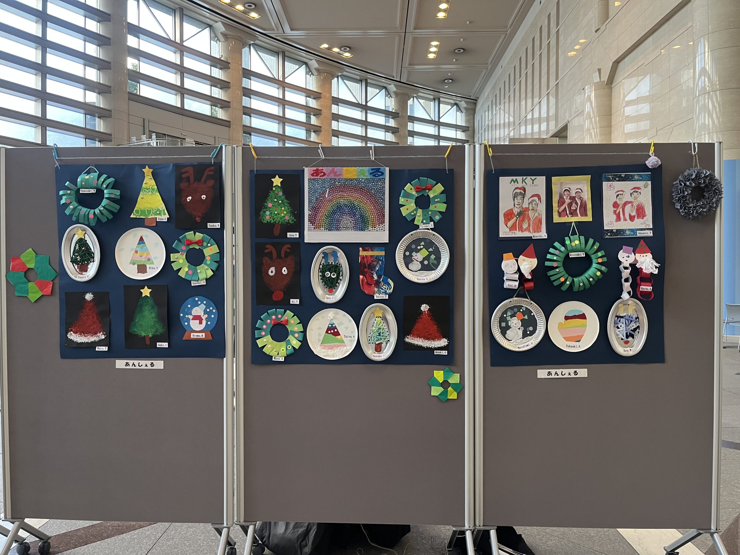 今年はクリスマスをテーマに、絵具や紙皿、毛糸などそれぞれ違った作品を作り、華やかな展示となりました🎄